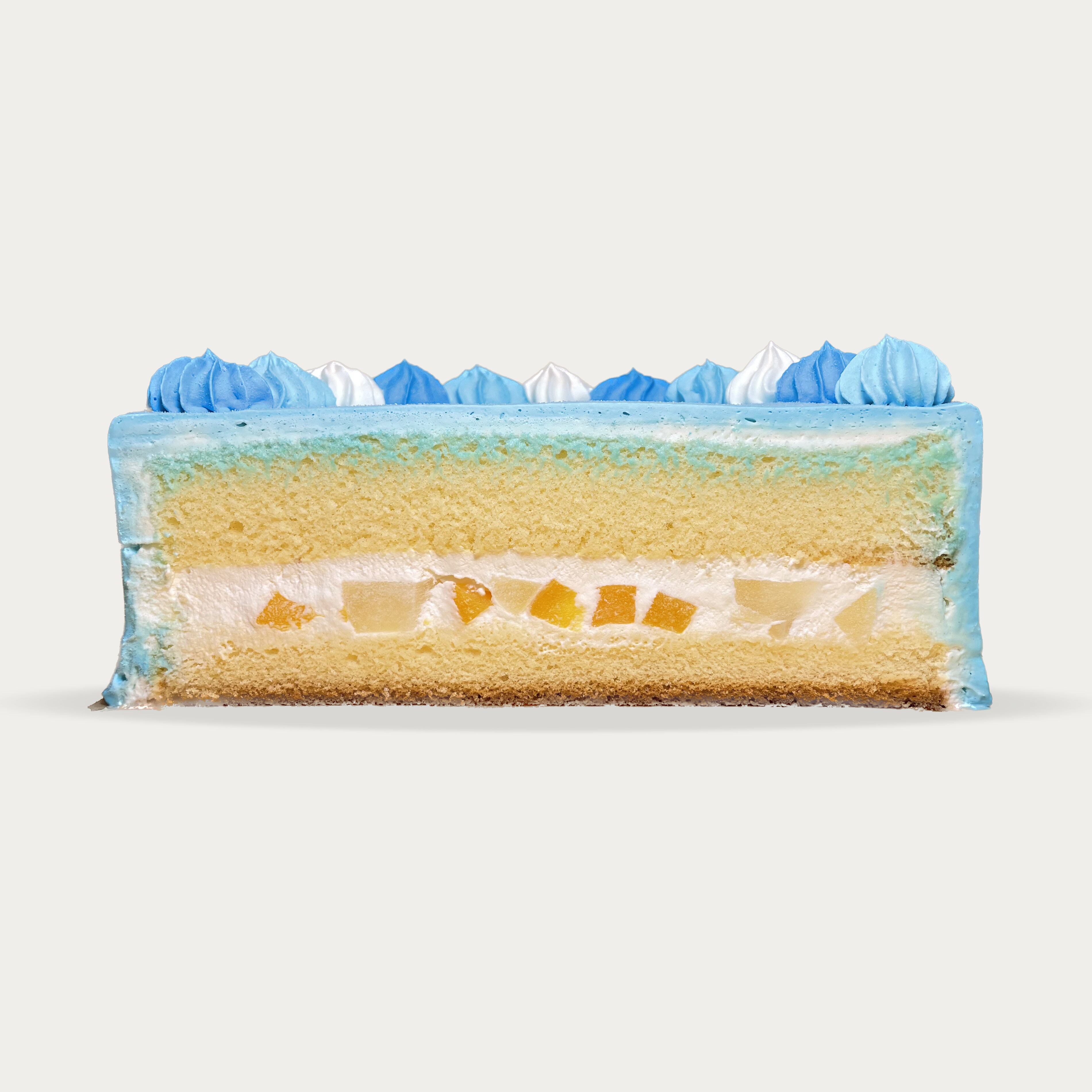 <生クリーム&スポンジ>ホイップクリーム(国内製造)、黄桃、りんご、卵、砂糖、小麦粉、牛乳、水飴、チョコレート、アラザン/乳化剤、加工デンプン、セルロース、プルラン、着色料(赤102、赤106、黄4、青1、竹炭、二酸化チタン)(※一部に小麦・卵・乳成分・大豆・もも・りんご・ゼラチンを含む)